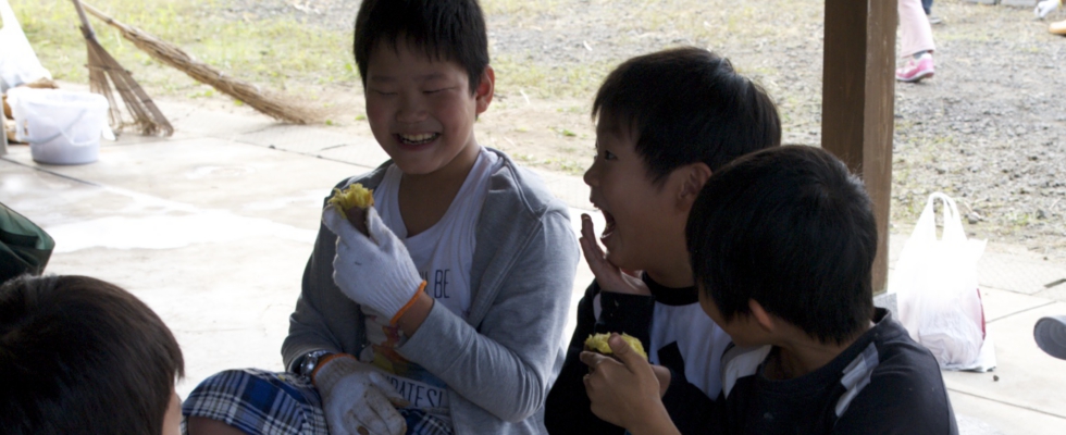 自分で掘ったサツマイモの焼き芋をおいしいね〜