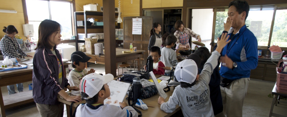 午前中に低学年チームがとってきたクリや持ってきた銀杏を煎って食べたり、やはり事前に採ってきたアケビを味見した。アケビは食べたことがない子がほとんどで、おいしい・おいしくないといろいろ。中には渋柿を食べて「渋い」という味を経験した子たちも。経験することが一番だよね(^_^)