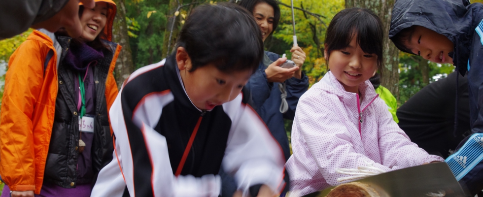 今回はバスに乗って、遠足気分?(^_^) 夕日寺を離れて白嶺小学校裏で、ぶなもり自然塾のみなさんとの交流を兼ねて雑木林フェスタを体験してきました。