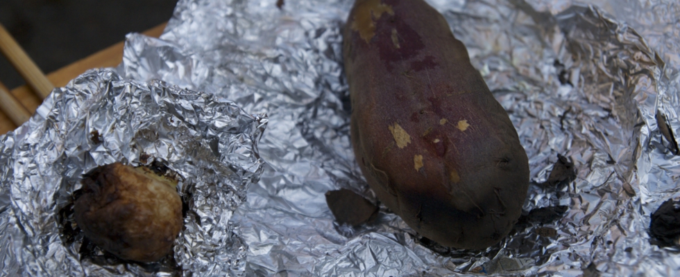 伝燈寺イモでつくったコロッケと焼き芋