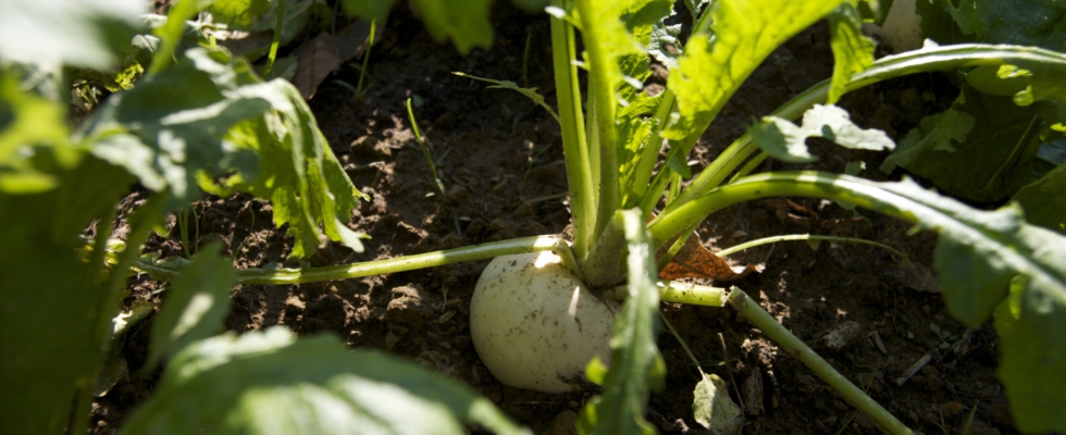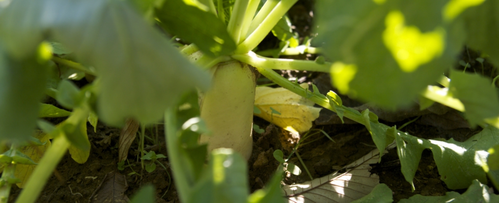 カブの横にはダイコンも(^_^) こちらもあっという間に立派に成長しました