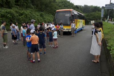 さて、朝ご飯と食べて、布団を片付けて、能登少年自然の家の方にみんなであいさつして、バスに乗り込みました。