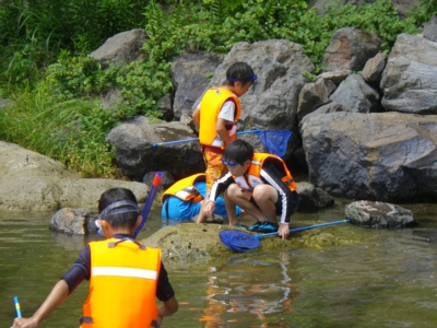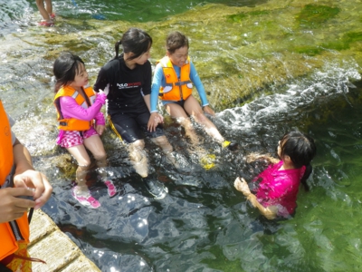 今回は男女2名ずつ計4名の高校生にボランティアとしてお手伝いをしてもらいました。4人ともキッズレンジャーの卒業生で、4年前は6年生だったけど、今年高校生になってお手伝いをしてくれました。4人ともキッズレンジャーの卒業生だけあって、お兄さん、お姉さんとして子どもたちと接してくれたし、荷物を持ってくれたり、とても助かりました。ありがとうございました。 (文:としちゃん) |