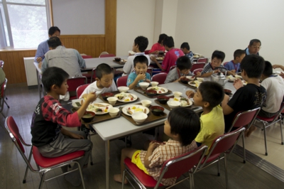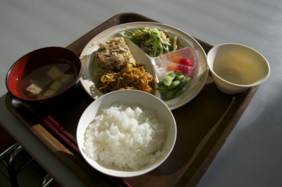 5時前にのと海洋ふれあいセンターのスタッフの皆さんにお礼のあいさつをして、宿泊先の能登少年自然の家に向かいました。約20分ほどで到着すると、まずは夕ご飯(^_^; とりあえず、荷物をホールにおいて食堂へ。まだ、昼間のように明るいけども、夕ご飯の時間が決まっているので…