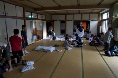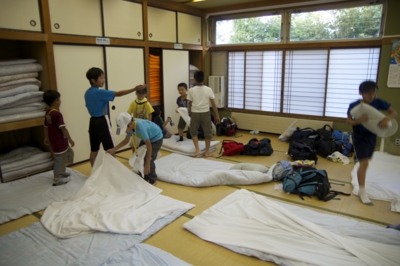 晩ご飯を食べてから、ゆっくりと部屋割りや布団やベッドの準備方法などオリエンテーションをして、荷物を持ってそれぞれの部屋へ。女子はベッドの部屋へ、男子は畳の大広間へ(^_^) ご飯も食べたし、ちょっと一休み、スタッフもお休みが必要だよ〜