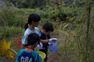 今日は収穫祭! 秋になり、自然園の中にある、たくさんの食べられるものが探します。自然のもの、人間が手をかけて作ったもの、実りの秋を感じました。