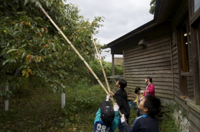 午後からは、カキ、クリ、サツマイモと3つのグループにわかれて、収穫体験に!